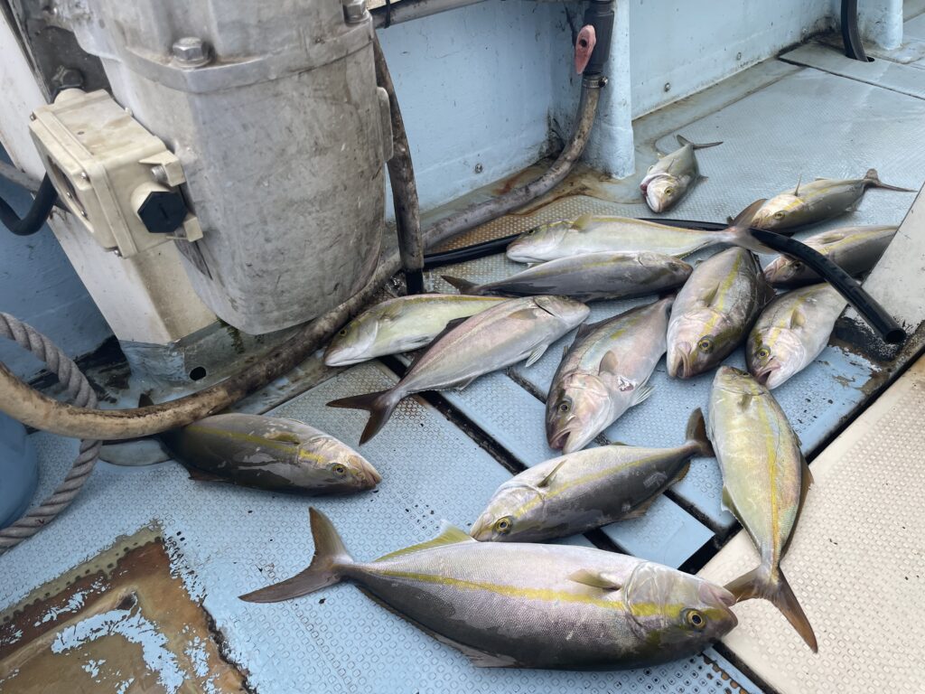 風と潮とウネリが合わず、ゴロゴロし少し気持ち悪い揺れでしたね。断トツ、トップの方は終始浅棚でコイカを連打してました。皆さんぼちぼち釣果で楽しめました。